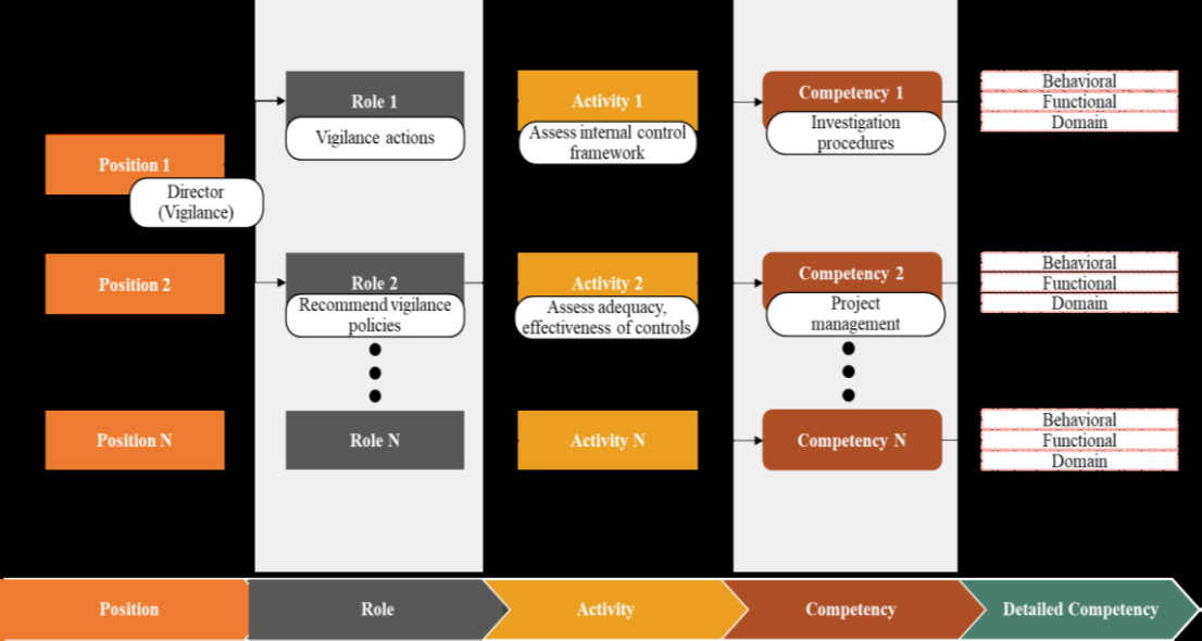 By design, FRAC will ensure development of a comprehensive, shared, and consolidated repository of competency information, accessible to all relevant stakeholders. The framework will define, in generic terms, the tasks that are performed for a role, the corresponding desired traits, behaviours, knowledge and skills, and the reference documents that detail how the activity should be performed. This common shared language of FRAC will also enable vertical integration of operations, which will align the strategy of the government to individuals and their competencies; and horizontal integration with tight coupling of human resource management processes- from recruitment to reward.