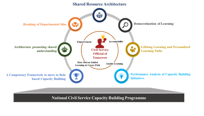 Central to the programme is the recognition that a suitable government workforce requires a competency driven capacity building approach. The workforce will focus on imparting competencies critical to discharge its roles. This will be achieved through a Competency Framework for Civil Services that will be totally indigenous to India.